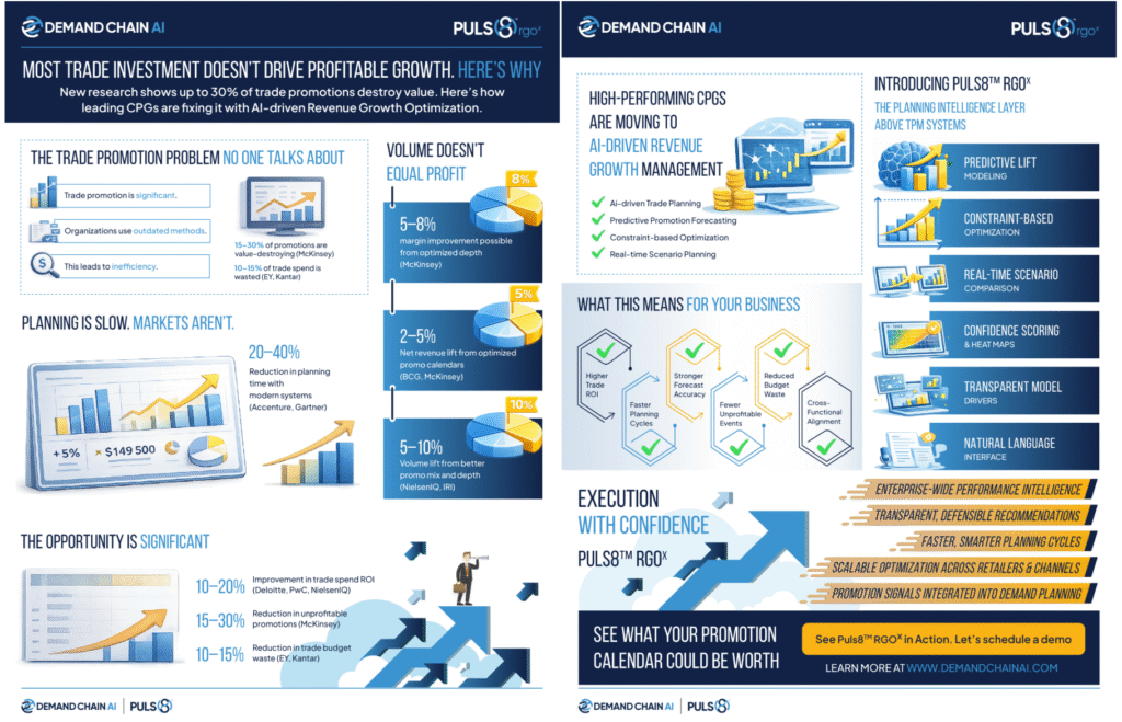 Puls8™ RGOˣ brings predictive modeling, intelligent scenario planning, and real-time insights together so teams can stop guessing and start growing, with confidence and margin intact.